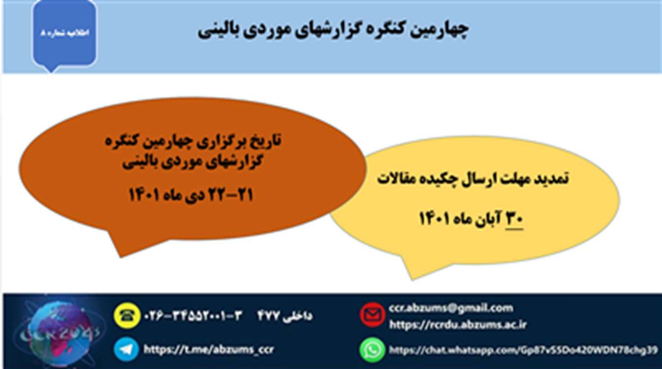 به گزارش دبیرخانه کنگره، به اطلاع میرساند بنا به استقبال گسترده از چهارمین کنگره ملی گزارشهای موردی بالنی مهلت ارسال مقالات تا 30 آبان ماه 1401 تمدید گردید.