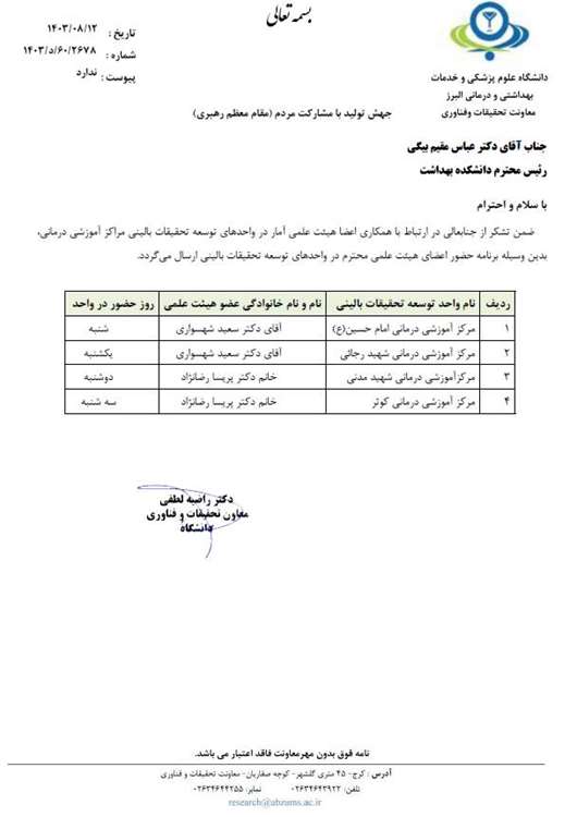 اطلاع رسانی برنامه حضور هیات علمی آمار در مراکز