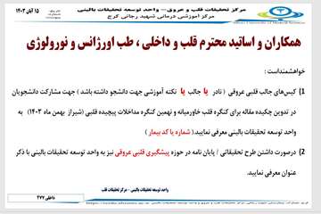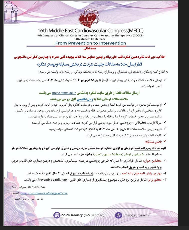 اطلاع رسانی 16 امین کنگره قلب خاورمیانه و نهمین همایش مداخلات پیچیده قلبی در شیراز