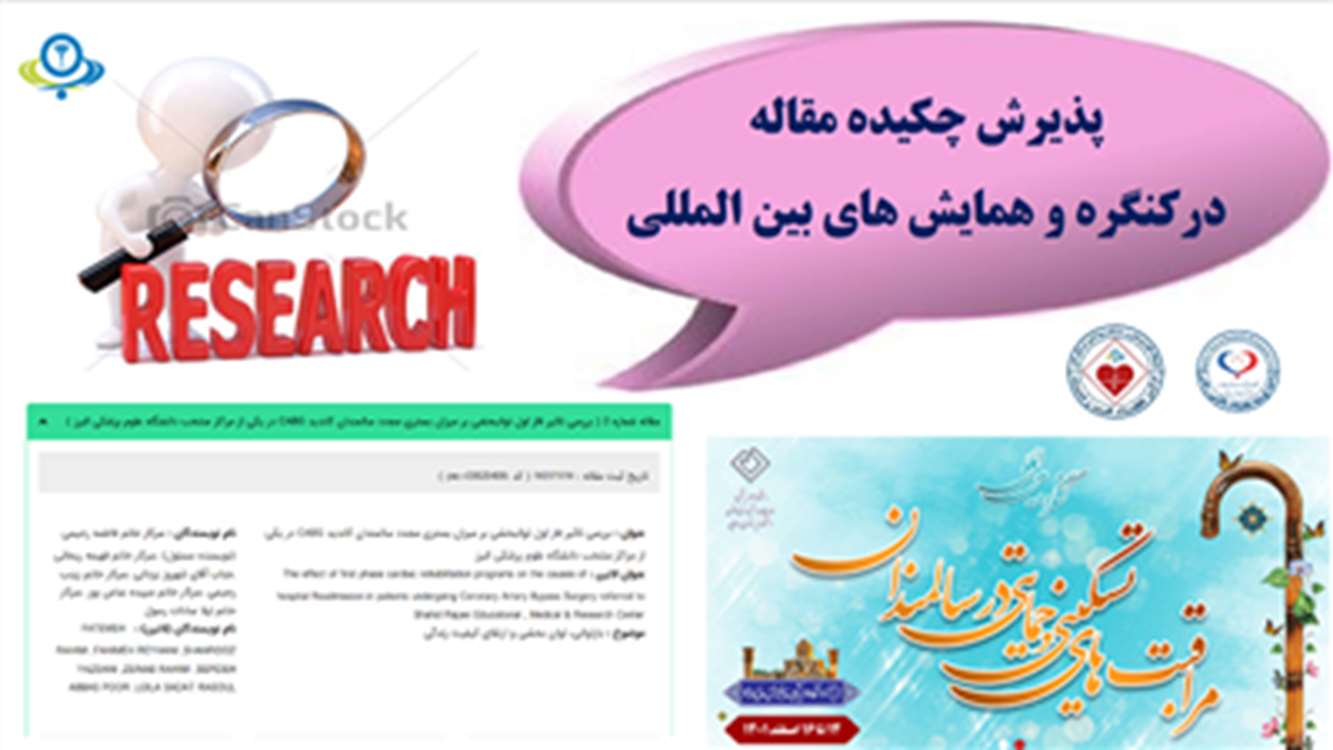 دو چکیده مقاله در کنگره و همایشهای بین المللی با افیلیشن مرکز تحقیقات قلب و عروق و تقدیر و تشکر واحد توسعه تحقیقات بالینی رجایی پذیرفته شد.