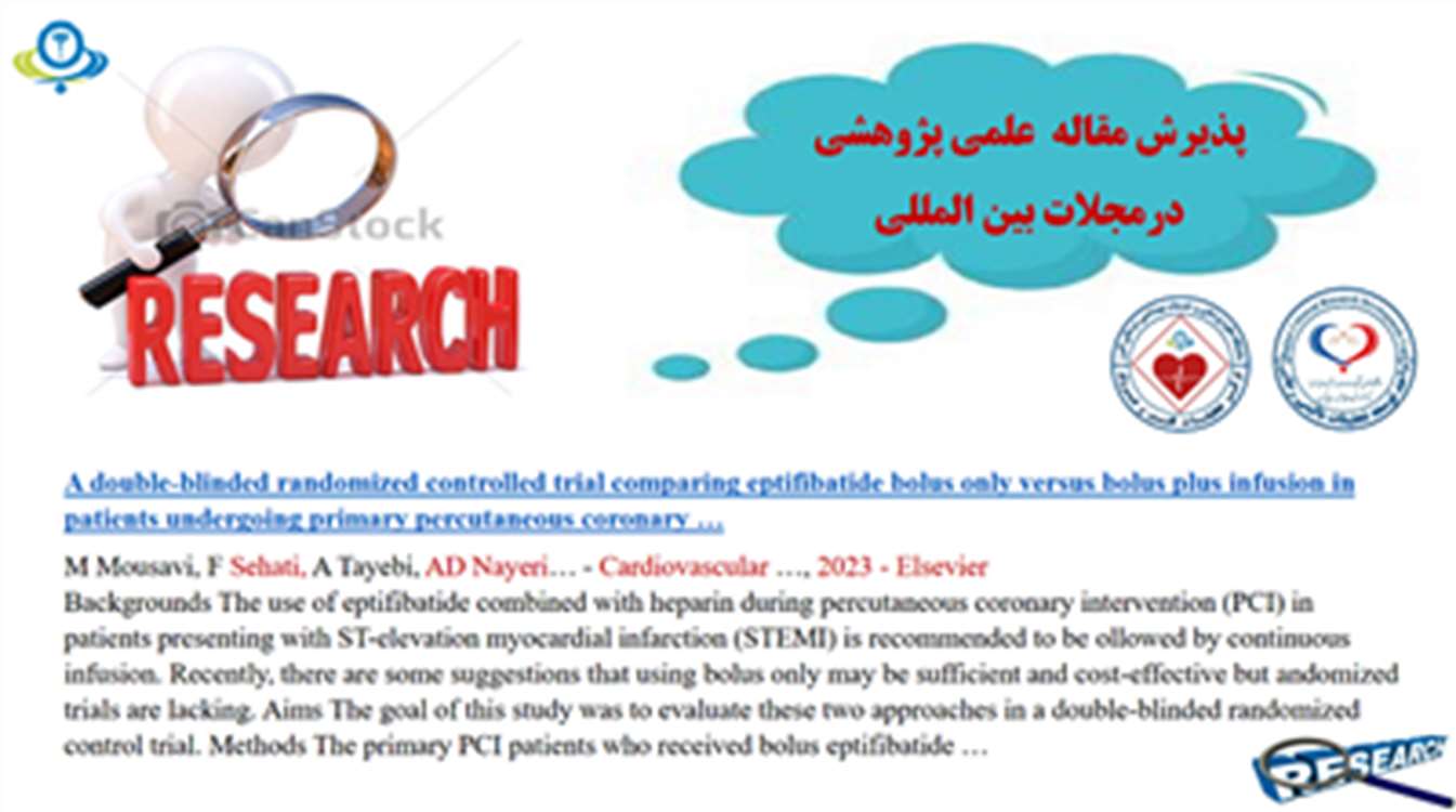 مقاله علمی پژوهشی در مجلات بین المللی با افیلیشن مرکز تحقیقات قلب و عروق و تقدیر و تشکر واحد توسعه تحقیقات بالینی رجایی پذیرفته شد.